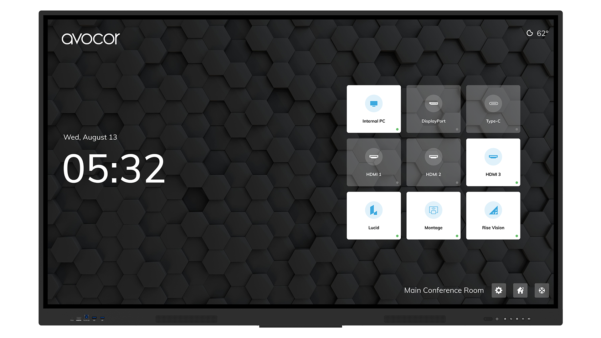 Convenient front-facing guest connection ports for hassle-free Bring-Your-Own-Meeting (BYOM) workflows.