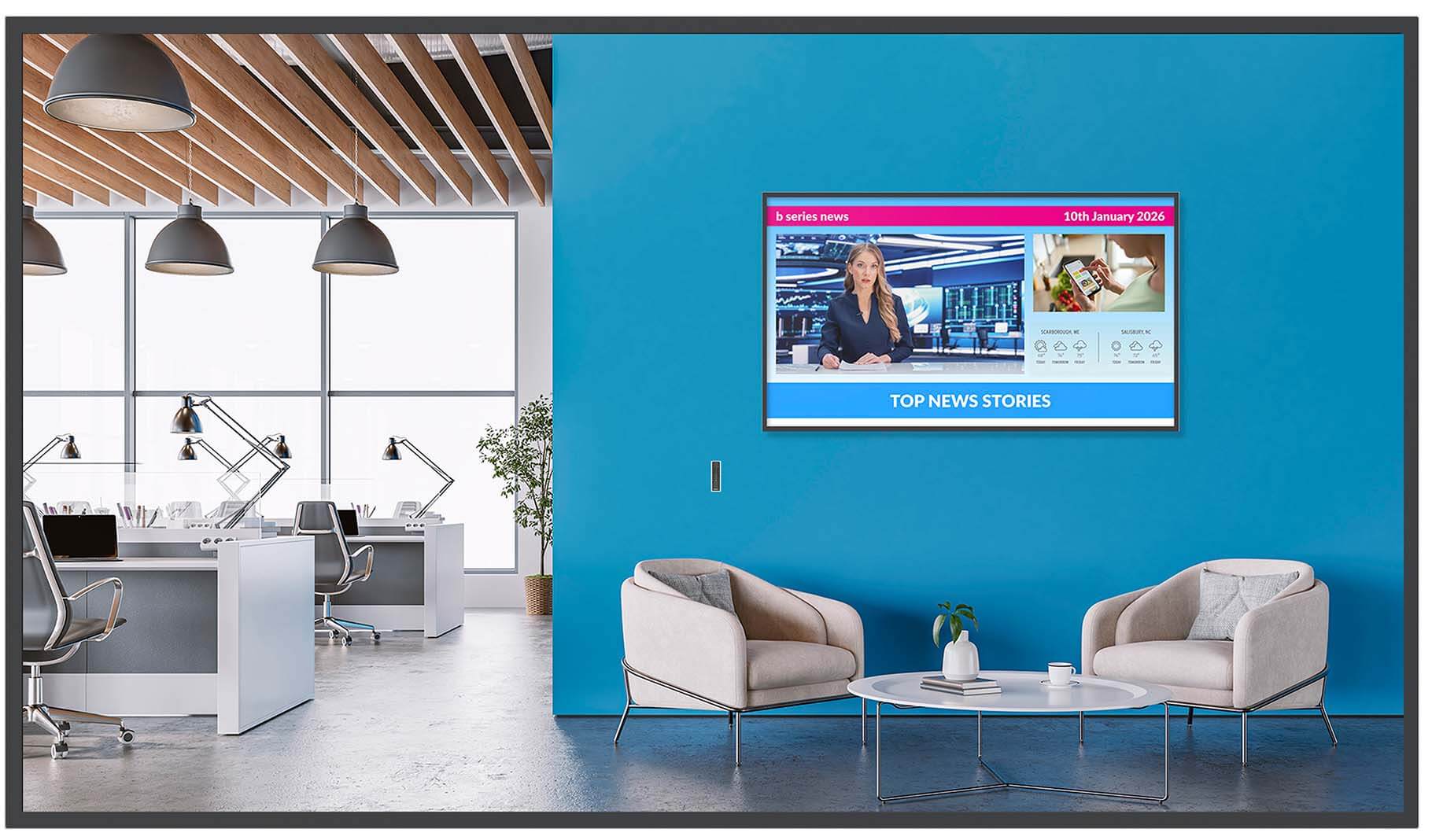 Available in 43” to 86”, the B Series delivers bright, 700-nit 4K visuals with slim, symmetrical bezels that enhance any interior. Dual HDMI 2.0 inputs, an OPS slot, and a robust Android SoC provide flexible integration and smooth, reliable playback of the most demanding content.